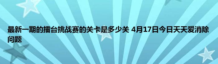 以上就是最新一期的擂台挑战赛的关卡是多少关 4月17日今日天天爱消除问题的推荐,相信通过最新一期的擂台挑战赛的关卡是多少关 4月17日今日天天爱消除问题这篇文章能帮到你,也欢迎对游戏很感兴趣小伙伴们一起来探讨。