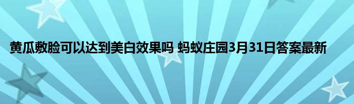 上面就是蚂蚁庄园3月31日题目黄瓜敷脸可以达到美白效果吗的答案了,希望能够给玩家们带来帮助。