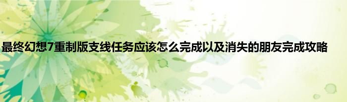 今天来聊聊关于最终幻想7重制版支线任务应该怎么完成以及消失的朋友完成攻略的文章,游戏是很多人的选择,但是游戏玩多了也会身心疲惫,现在就为大家来简单介绍下最终幻想7重制版支线任务应该怎么完成以及消失的朋友完成攻略,希望对各位小伙伴们有所帮助。