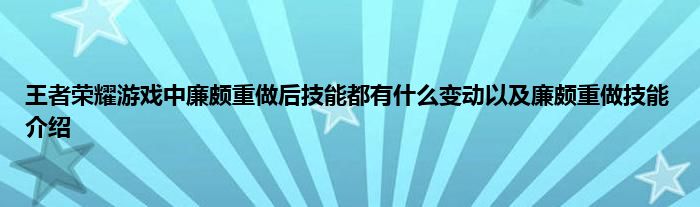 今天来聊聊关于王者荣耀游戏中廉颇重做后技能都有什么变动以及廉颇重做技能介绍的文章,游戏是很多人的选择,但是游戏玩多了也会身心疲惫,现在就为大家来简单介绍下王者荣耀游戏中廉颇重做后技能都有什么变动以及廉颇重做技能介绍,希望对各位小伙伴们有所帮助。