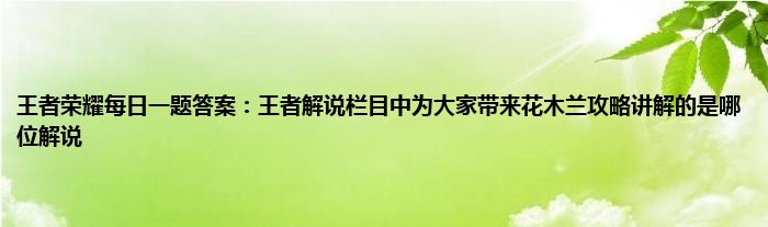 题目:的王者解说栏目中,为大家带来花木兰攻略讲解的是哪位解说?