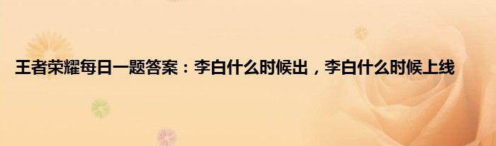 今天来聊聊关于王者荣耀每日一题答案:李白什么时候出,李白什么时候上线的文章,游戏是很多人的选择,但是游戏玩多了也会身心疲惫,现在就为大家来简单介绍下王者荣耀每日一题答案:李白什么时候出,李白什么时候上线,希望对各位小伙伴们有所帮助。