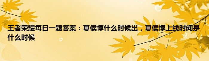 问:王者荣耀夏侯惇什么时候出?夏侯惇上线时间是什么时候?