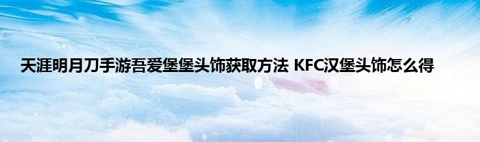 最近玩天涯明月刀手游的玩家都在问,游戏里面的吾爱堡堡头饰怎么获得?【吾爱堡堡】是天刀手游X肯德基二期联动中的一款汉堡造型的头饰,那么这个头饰要怎么领取呢?小编我特意整理了相关的资讯,下面就是KFC汉堡头饰获取方法了,喜欢这个汉堡包的少侠们都来看看吧!