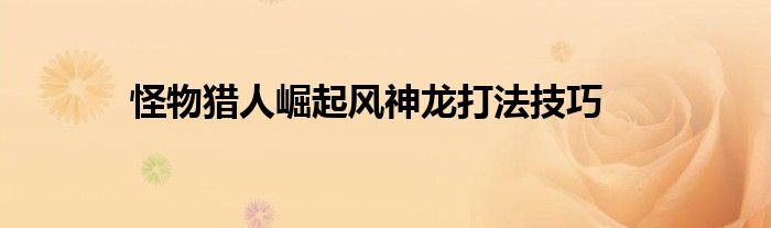 以上就是怪物猎人崛起风神龙猎杀心得,还希望能够帮助到大家。