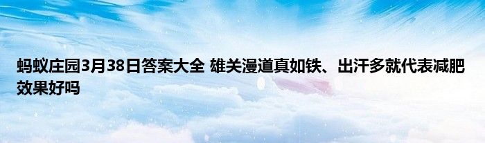 2021年3月28日蚂蚁庄园答案是什么?3月28日蚂蚁庄园的答案很多的玩家都不清楚,这两个问题有:“雄关漫道真如铁”中的“雄关”指的是?锻炼的时候,出汗多就代表减肥效果好吗?下面小编给大家介绍一下具体的答案和解析,一起来看看吧。