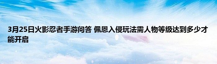 今天来聊聊关于3月25日火影忍者手游问答 佩恩入侵玩法需人物等级达到多少才能开启的文章,游戏是很多人的选择,但是游戏玩多了也会身心疲惫,现在就为大家来简单介绍下3月25日火影忍者手游问答 佩恩入侵玩法需人物等级达到多少才能开启,希望对各位小伙伴们有所帮助。