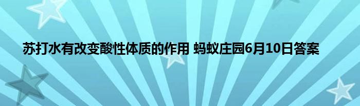 苏打水有改变酸性体质的作用,所以应该常喝、多喝,该说法?蚂蚁庄园每天都会问玩家一些问题,答对了的话就能领取饲料给小鸡喂食。今天的答案可能还是有很多的玩家不清晰的,6月10日的最新问题发布,以下是详细答案,一起来看看吧。