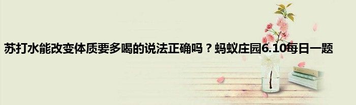 大家好,今天是6月10日,今天蚂蚁庄园的问题已经出来了,其中有一个和健康有关,大家知道苏打水呈弱碱性,人的血液也是弱碱性,今天的问题是苏打水有改变酸性体质的作用,所以应该常喝、多喝,该说法是否正确,下面就来一起看看答案。