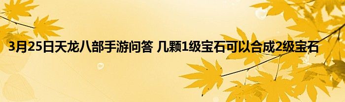 今天来聊聊关于3月25日天龙八部手游问答 几颗1级宝石可以合成2级宝石的文章,游戏是很多人的选择,但是游戏玩多了也会身心疲惫,现在就为大家来简单介绍下3月25日天龙八部手游问答 几颗1级宝石可以合成2级宝石,希望对各位小伙伴们有所帮助。