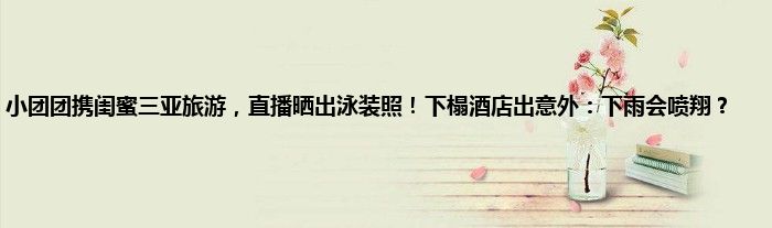 感谢你在百忙之中抽出时间阅读小团团携闺蜜三亚旅游,直播晒出泳装照!下榻酒店出意外:下雨会喷翔?这篇文章。你觉得今天小团团携闺蜜三亚旅游,直播晒出泳装照!下榻酒店出意外:下雨会喷翔?话题怎么样?关于小团团携闺蜜三亚旅游,直播晒出泳装照!下榻酒店出意外:下雨会喷翔?这篇文章的任何评论都可以告诉我。你的每一个建议都是对小编辑的肯定和鼓舞。小编明天会继续给你带来更多的好内容。我希翼你不要错过。感谢支持哟!