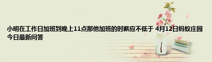 欢迎大家来到这里,能进来的小伙伴都有玩蚂蚁庄园的,支付宝蚂蚁庄园每天都会在小课堂更新一道题目,答对即可领取小鸡饲料180G,4月12日蚂蚁庄园问题是:小明在工作日加班到晚上11点,那他加班的时薪应不低于??很多小伙伴都不知道小明在工作日加班到晚上11点,那他加班的时薪应不低于?这个问题的答案是什么,那么小编就为大家分享下4月12日蚂蚁庄园课题问题的答案,希望对大家有所帮助!