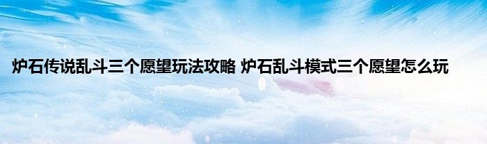 以上就是今天给小伙伴们带来的炉石传说三个愿望乱斗怎么玩的解答,希望对大家有所帮助。