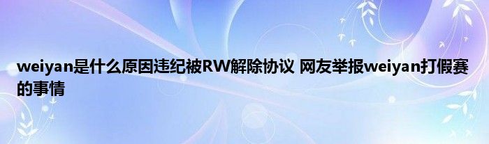 今天来聊聊一篇关于weiyan是什么原因违纪被RW解除协议 网友举报weiyan打假赛的事情的文章,现在就为大家来简单介绍下weiyan是什么原因违纪被RW解除协议 网友举报weiyan打假赛的事情,希望对各位小伙伴们有所帮助。