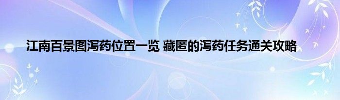 江南百景图中有一个任务需要玩家找到泻药的位置,玩家会得到一张纸条,很多玩家都搞不懂这个纸条该怎么解读,也就不知道泻药的位置,小编整理了有关内容,下面就来尾随小编一起来看看泻药位置在哪里吧。