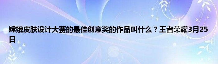 嫦娥皮肤设计大赛的最佳创意奖第一名已经出来了,这一款皮肤十分的仙女风,也很适合嫦娥。那么,获得本次嫦娥皮肤设计大赛的最佳创意奖的作品叫做什么?这是王者荣耀微信2021年3月25日的每日一题问题,回答正确可获得微信提供的每日一题游戏奖励。接下来就让我们一起了解一下吧!