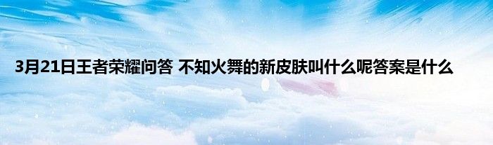 今天来聊聊关于3月21日王者荣耀问答 不知火舞的新皮肤叫什么呢答案是什么的文章,游戏是很多人的选择,但是游戏玩多了也会身心疲惫,现在就为大家来简单介绍下3月21日王者荣耀问答 不知火舞的新皮肤叫什么呢答案是什么,希望对各位小伙伴们有所帮助。
