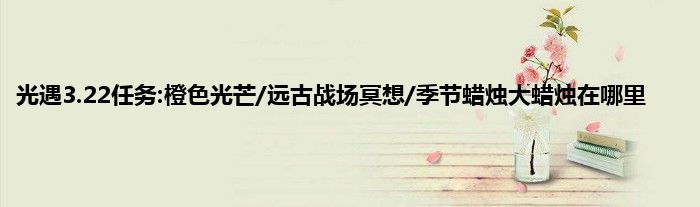 光遇3月22日任务攻略更新分享。今天的几个每日任务主要是牵手组队、收集橙色光芒、收集30点烛光、及在远古战场中央冥想。有些难找的还是橙色光芒、远古战场冥想点、以及季节蜡烛和大蜡烛位置,这里就为大家带来详细的图解攻略。