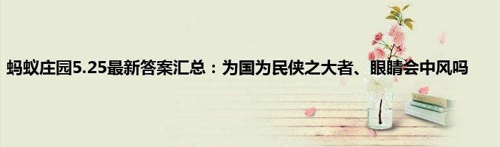 大家好,今天是5月25日,今天蚂蚁庄园的问题已经出来了,一个和小说有关,一个和健康有关,问题分别是,金庸小说中,“为国为民,侠之大者”是哪位大侠说的?眼睛也会“中风”吗?很多小伙伴不知道答案,答对的可以获得小鸡饲料,下面就来一起看看正确答案吧。