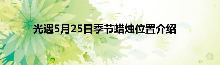 光遇每天季节蜡烛的位置都不一样,今天的蜡烛位置也更新了,你知道在哪吗?5月25日季节蜡烛在哪,相信不少的玩家都有这样的疑问,今天小编就为大家带来光遇5月25日季节蜡烛位置,希翼可以帮到玩家。