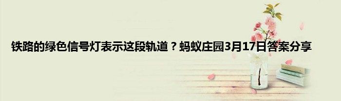 蚂蚁庄园今天的问题已经出来了,问题有关于铁路,答对的小伙伴可以获得小鸡饲料的奖励,问题是铁路也有“红绿灯”,绿色信号灯表示这段轨道,信号灯为铁路信号的视觉信号,除此之外还有听觉信号:号角、口笛、响墩发出的音响和机车、轨道车的鸣笛声,那么这个问题的答案是什么呢,下面就跟随小编一起来看看具体的答案,希望能帮到大家。
