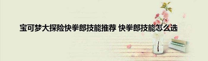 快拳郎是宝可梦大探险中一个比较经典的角色之一,在这款游戏中也是一个很稀有的宝可梦,而快拳郎有不少的技能可以选,很多玩家不知道应该怎么搭配技能,怎么选择技能,下面就来尾随小编一起来看看详细的攻略吧。