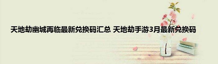 天地劫幽城再临刚开服不久,为了回馈玩家,每隔一段时间就会放出一些福利兑换码,可以兑换很多丰富的资源和道具,玩家开局必备,很多玩家在问兑换码是什么,在哪里兑换,小编收集了3月份最新的兑换码,下面就来一起看看吧。