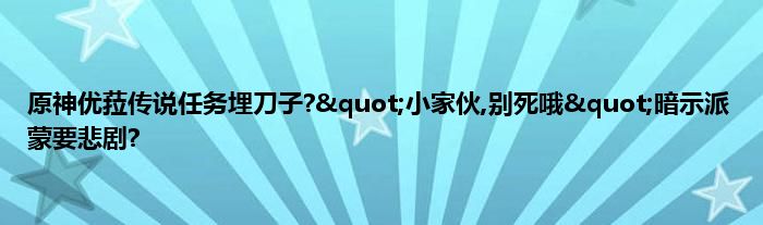 原神西风骑士团游击队队长优菈终于来了!大家现在最关注的,无疑就是优菈传说任务了。不过如果跑过这趟优菈任务剧情的玩家,可能都会有感觉,难道米哈游官方又要埋刀子了?这次说不定还是要刀派蒙!?