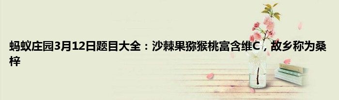 蚂蚁庄园小客堂回答正确即可领取奖励,那么蚂蚁庄园2021年3月12日正确答案是什么呢?现在为大家分享蚂蚁庄园3月12日的正确答案,一起来了解下吧。