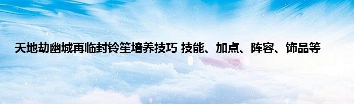 天地劫幽城再临中有很多角色,那么这些角色怎么玩,其中的封铃笙大家都很喜欢,那么,封铃笙怎么玩?封铃笙是游戏中的一名角色,不少玩家想知道封铃笙怎么玩,下面为大家带来了天地劫幽城再临封铃笙的解析与培养,快来看看吧。