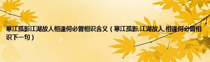 大家好,小科来为大家解答以上问题。寒江孤影江湖故人相逢何必曾相识含义,寒江孤影,江湖故人,相逢何必曾相识下一句很多人还不知道,现在让我们一起来看看吧!