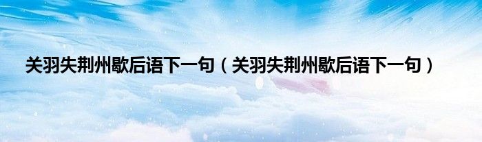 大家好,小科来为大家解答以上问题。关羽失荆州歇后语下一句,关羽失荆州歇后语下一句很多人还不知道,现在让我们一起来看看吧!