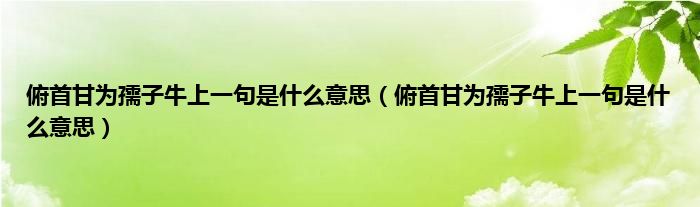 大家好,小科来为大家解答以上问题。俯首甘为孺子牛上一句是什么意思,俯首甘为孺子牛上一句是什么意思很多人还不知道,现在让我们一起来看看吧!