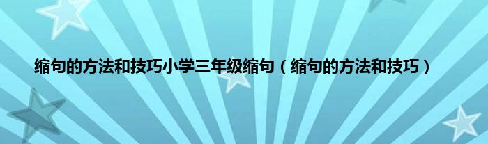 大家好,小科来为大家解答以上问题。缩句的方法和技巧小学三年级缩句,缩句的方法和技巧很多人还不知道,现在让我们一起来看看吧!