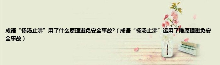 大家好,小科来为大家解答以上问题。成语“扬汤止沸”用了什么原理避免安全事故?,成语“扬汤止沸”运用了啥原理避免安全事故很多人还不知道,现在让我们一起来看看吧!