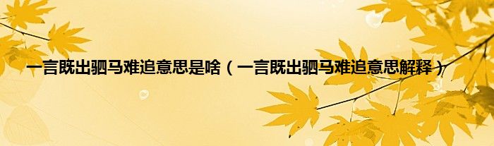 1、 一言既出驷马难追意思解释.答案是:话一出口,四马车也追不回来。