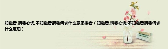 大家好,小科来为大家解答以上问题。知我者,谓我心忧,不知我者谓我何求什么意思拼音,知我者,谓我心忧,不知我者谓我何求什么意思很多人还不知道,现在让我们一起来看看吧!