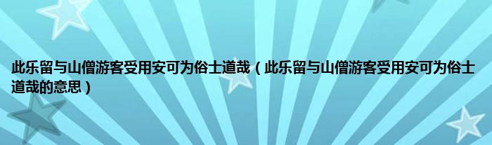 1、 此乐留与山僧游客受用安可为俗士道哉的意思:这种乐趣只有山里的和尚和见多识广的游客才能享受。