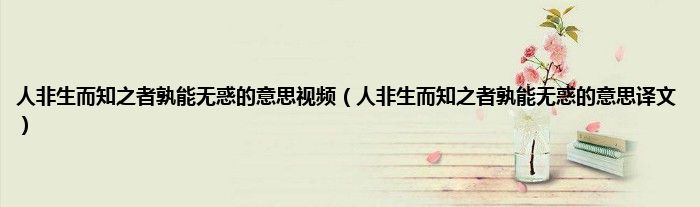 大家好,小科来为大家解答以上问题。人非生而知之者孰能无惑的意思视频,人非生而知之者孰能无惑的意思译文很多人还不知道,现在让我们一起来看看吧!
