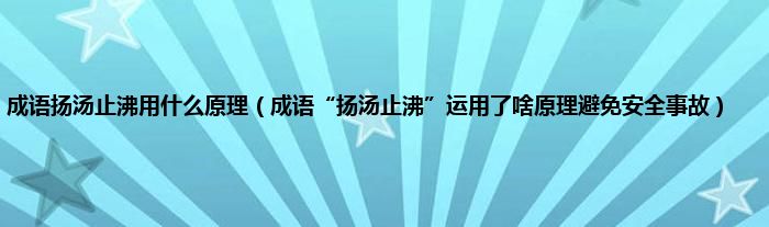 大家好,小科来为大家解答以上问题。成语扬汤止沸用什么原理,成语“扬汤止沸”运用了啥原理避免安全事故很多人还不知道,现在让我们一起来看看吧!