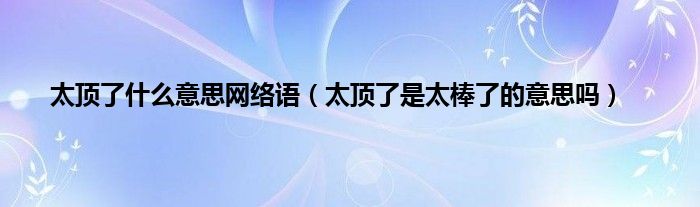 大家好,小科来为大家解答以上问题。太顶了什么意思网络语,太顶了是太棒了的意思吗很多人还不知道,现在让我们一起来看看吧!