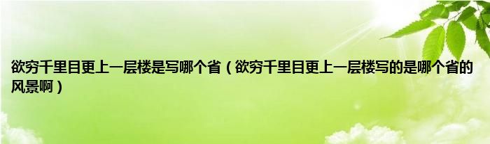 大家好,小科来为大家解答以上问题。欲穷千里目更上一层楼是写哪个省,欲穷千里目更上一层楼写的是哪个省的风景啊很多人还不知道,现在让我们一起来看看吧!
