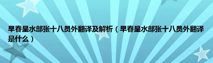 大家好,小科来为大家解答以上问题。早春呈水部张十八员外翻译及解析,早春呈水部张十八员外翻译是什么很多人还不知道,现在让我们一起来看看吧!