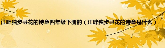 大家好,小科来为大家解答以上问题。江畔独步寻花的诗意四年级下册的,江畔独步寻花的诗意是什么很多人还不知道,现在让我们一起来看看吧!