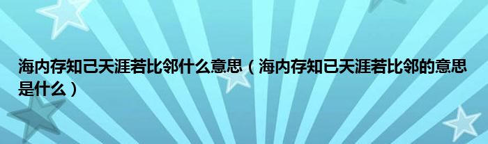 1、 海内存知已与天为邻的意思是:天下有知音,即使相距遥远,也是近邻。《送杜少府之任蜀州/送杜少府之任蜀川》唐代王波所作