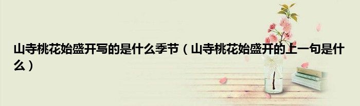 大家好,小科来为大家解答以上问题。山寺桃花始盛开写的是什么季节,山寺桃花始盛开的上一句是什么很多人还不知道,现在让我们一起来看看吧!
