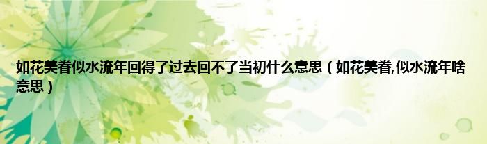 大家好,小科来为大家解答以上问题。如花美眷似水流年回得了过去回不了当初什么意思,如花美眷,似水流年啥意思很多人还不知道,现在让我们一起来看看吧!