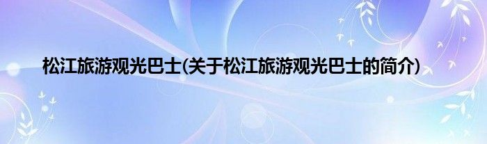 大家好,松江旅游观光巴士,关于松江旅游观光巴士的简介很多人还不知道,现在让我们一起来看看吧!