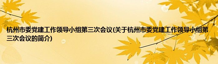 本文关于杭州市委党建工作领导小组第三次会议的简介就讲解完毕,希望对大家有所帮助。