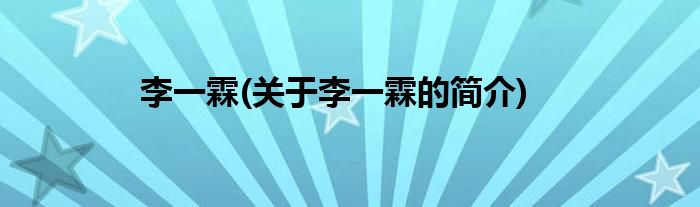 本文关于李一霖的简介就讲解完毕,希望对大家有所帮助。